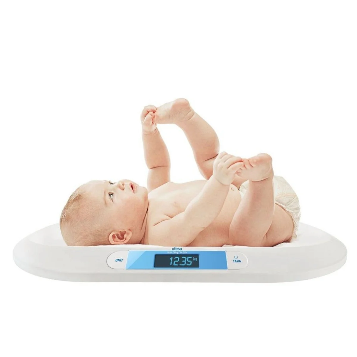 Cântarul pentru bebeluși și copii poate înregistra până la 20 kg și are o precizie minimă de 10 grame,si are un design curbat ușor de curățat